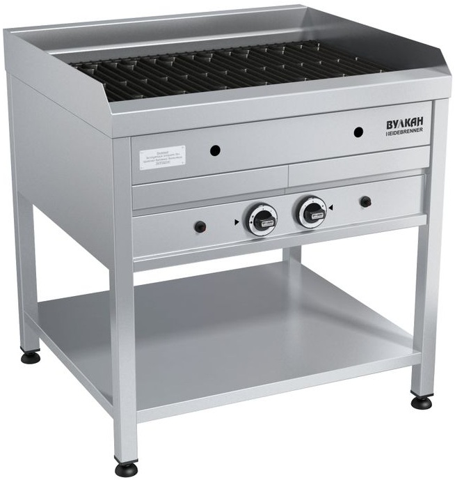 Лавовый гриль Вулкан BPD 02K «Сноу» используется для жарки мяса, рыбы и овощей на предприятиях общественного питания, торговли и пищевых производствах. Модель с газ-контролем, пьезопозжигом, запальной горелкой, вместительной полкой, поддоном для сбора масла и регулируемыми ножками. Материал корпуса - высококачественная нержавеющая сталь, материал решетки - чугун.
