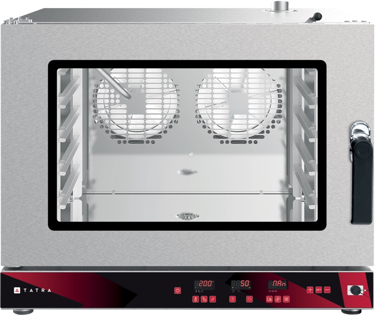 Пароконвектомат Tatra TC05D20L предназначен для обжаривания, приготовления на пару, бланширования, запекания и других видов тепловой обработки продуктов на предприятиях общественного питания и торговли. Модель оснащена 2 реверсивными вентиляторами, электромеханической панелью управления, подсветкой камеры и термощупом. Модель эффективно сочетает в себе функции конвекционной печи, жарочного шкафа, пароварки, плиты и сковороды.