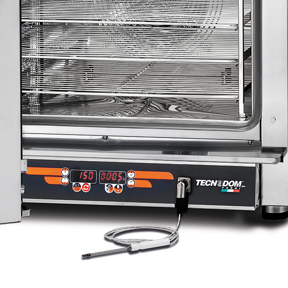 - Режим Delta T с использованием термощупа и обеспечением постоянной разности температур внутри продукта и воздуха внутри камеры для однородного выпекания
