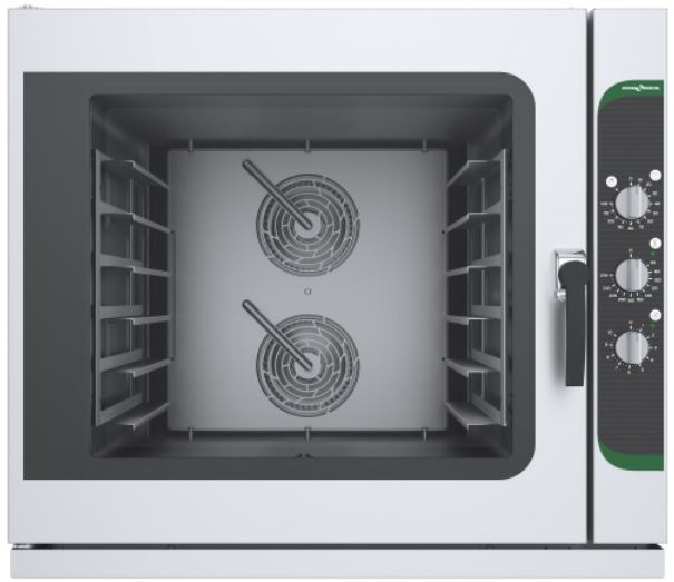 Пароконвектомат Пищевые Технологии ПР-06М-Э редназначен для приготовления широкого спектра блюд, выпечки хлебобулочных и кондитерских изделий в гостиничном и ресторанном бизнесе, на предприятиях пищевой промышленности, общественного питания и торговли. Модель оснащена жарочной камерой с 2 кольцевыми трубчатыми электронагревателями (ТЭНами) и 2 электродвигателями с вентиляторами в задней стенке, левосторонней герметично запираемой дверью с механическим замком, 4 устойчивыми опорами, электромеханической панелью управления с 3 круговыми поворотными регуляторами и 3 сигнальными светодиодными индикаторами. Корпус выполнен из высококачественной стали с термоизоляцией.