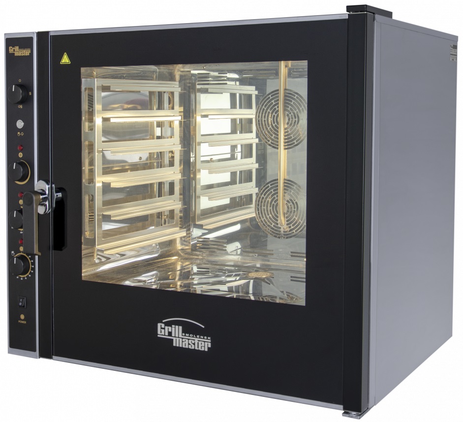 Пароконвектомат Grill Master ПКЭИ/6 используется на предприятиях общественного питания, торговли и пищевых производствах для приготовления широкого спектра блюд. Модель оснащена электромеханическим управлением, 2 вентиляторами, реверсом, автоматическим поддержанием температуры, автоматическим и ручным пароувлажнением и внутренней подсветкой. Материал корпуса - высококачественная нержавеющая сталь, материал двери - двойное термостойкое стекло.