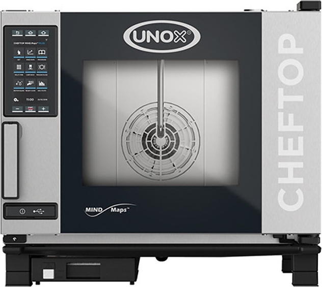 Пароконвектомат UNOX XEVC-0511-EPLM предназначен для приготовления различных блюд, выпечки хлебобулочных и кондитерских изделий на предприятиях общественного питания, торговли и пищевых производствах. Модель оснащена панелью управления  PLUS, LED-подсветкой, C-образными с зубчатыми нишами направляющими и левым открыванием двери. Материал камеры - высококачественная нержавеющая сталь AISI 304, направляющие - профилированная сталь.