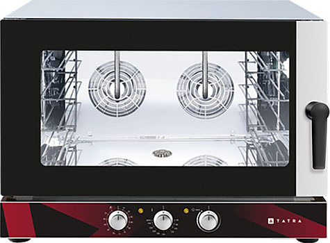 Пароконвектомат Tatra TBI 04 M.V предназначен для выпечки хлебобулочных и кондитерских изделий на предприятиях общественного питания, торговли и пищевых производствах. Модель оснащена электромеханическим управлением с LCD экраном 2.4", 2 реверсивными вентиляторами, инжекторным пароувлажнением, таймером, подсветкой галогенной лампой и закругленными краями для легкой чистки. Материал камеры и корпуса - высококачественная нержавеющая сталь, материал дверцы - двойное жаропрочное стекло.
