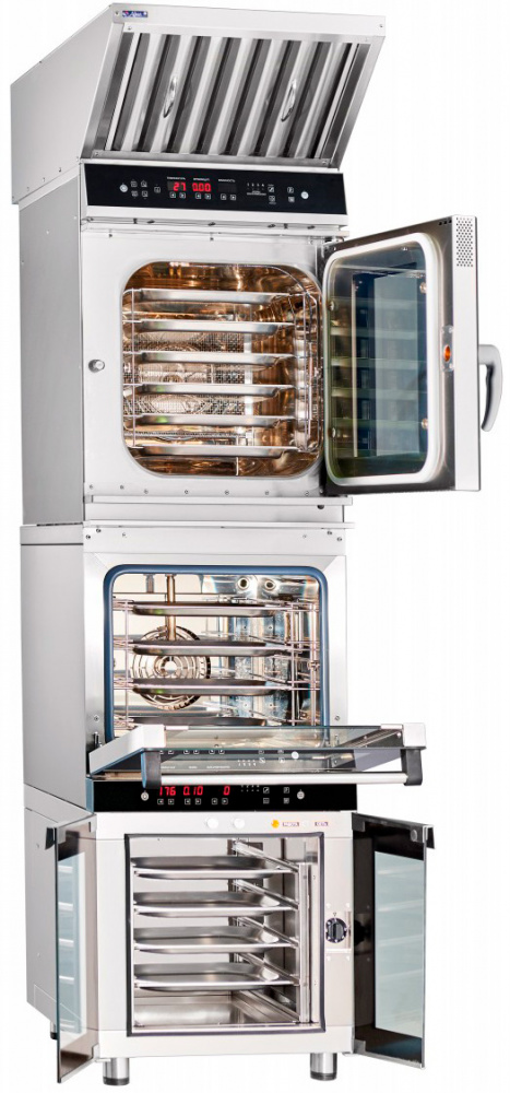 Пароконвектомат может устанавливаться в колонну с конвекционными печами КПП-4-1/2П или КПП-4-1/2Э и расстоечным шкафом ШРТ-4-02 при помощи установочного комплекта КСП6-1/2П.