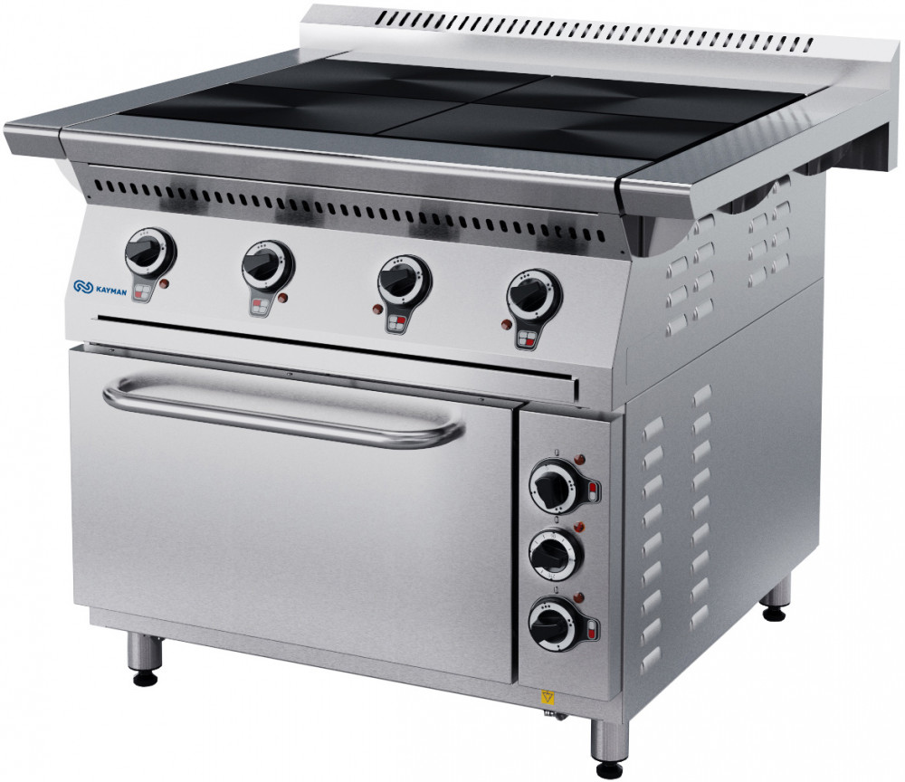 Электрическая плита KAYMAN ПЭ-4-13-МХ используется на предприятиях общественного питания, торговли и пищевых производствах для приготовления блюд в наплитной посуде. Плита оснащена комплектом боковых столешниц. Материал плиты - нержавеющая сталь, материал жарочного шкафа - углеродистая сталь.