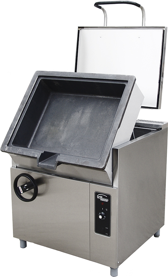 Опрокидывающаяся сковорода Grill Master Ф2ЖТЛСЖГ предназначена для приготовления мяса, рыбы, овощей и других продуктов методом жарки, тушения, припускания, пассерования, приготовления на пару и во фритюре на предприятиях общественного питания и торговли. Корпус выполнен из нержавеющей стали, чаша - из чугуна.