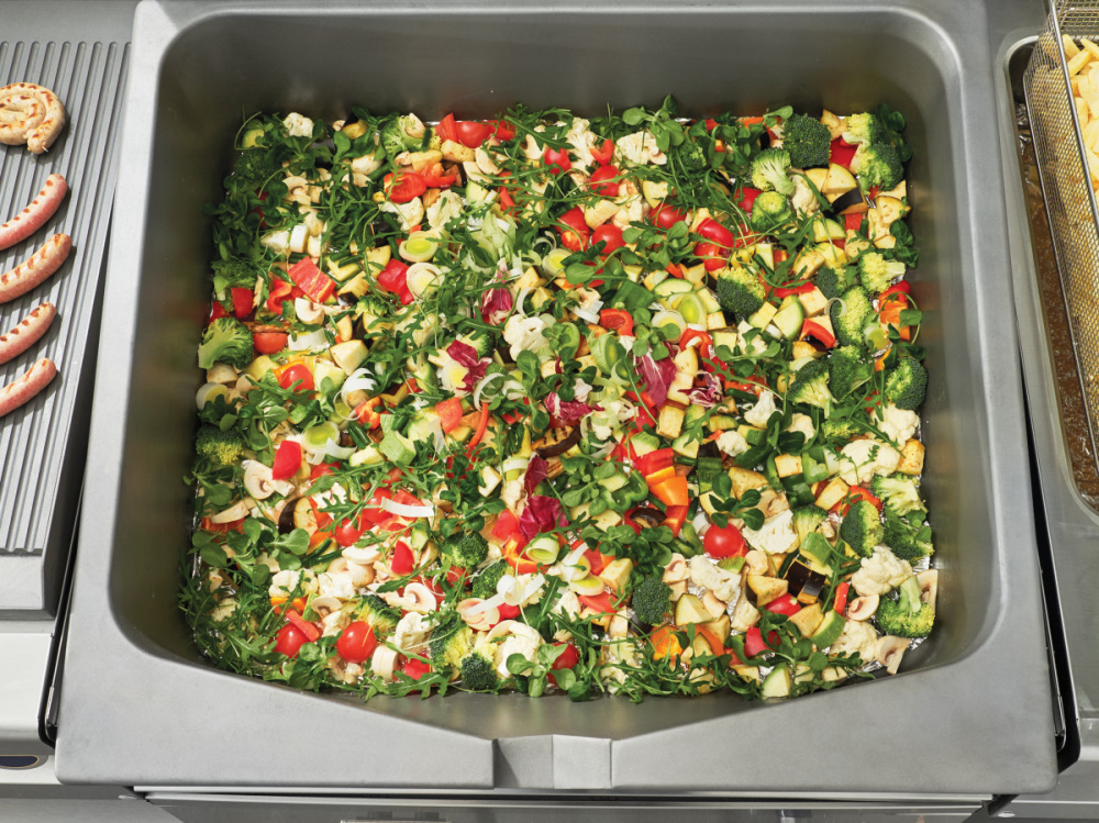 Опрокидывающаяся сковорода Abat ГСК-90-0,47-70 предназначена для приготовления мяса, рыбы, овощей и других продуктов методом жарки, тушения, припускания, пассерования, приготовления на пару и во фритюре на предприятиях общественного питания и торговли. Модель оснащена цельнотянутой сварной чашей, газ-контролем, пьезорозжигом, фиксацией ручки крышки в любом положении и регулируемыми по высоте ножками.