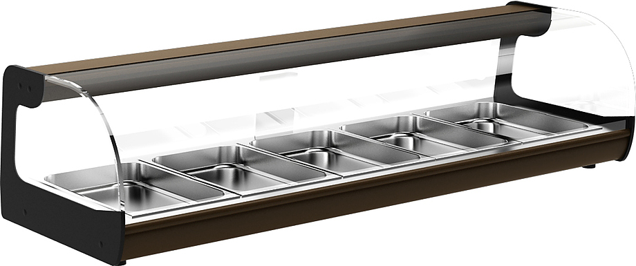 Тепловая витрина Carboma A37 SH 1,0-1 (ВТ-1,0) предназначена для демонстрации и поддержания в горячем состоянии мясных и рыбных изделий, пирожков, различных закусок и готовых блюд на предприятиях общественного питания и торговли. Модель оснащена регулятором температуры, ТЭНом и термостатом. Можно размещать другие стандартные гастроемкости.