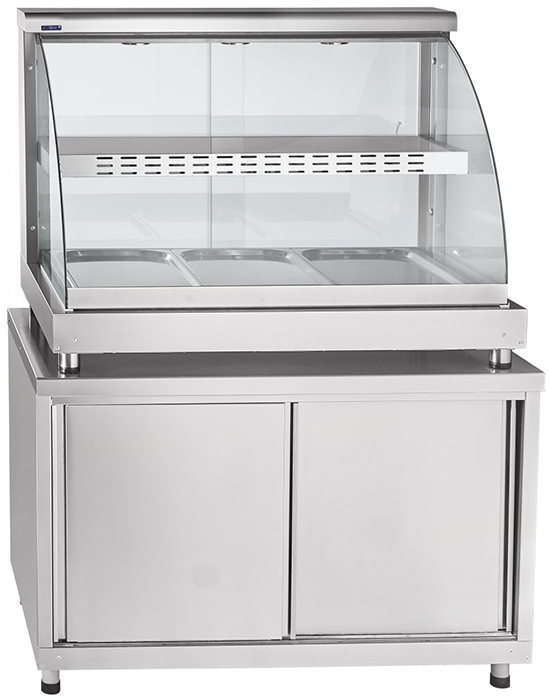 Конструкция, полка и стойки выполнены из высококачественной нержавеющей стали AISI 304 толщиной 1 мм, боковые стенки и дверцы - из закаленного стекла толщиной 5 мм. Эксплуатация витрины допускается при температуре окружающей среды от 12 до 42 °C.