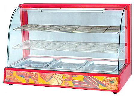 Тепловая витрина ROAL DH-828 предназначена для демонстрации и поддержания блюд в горячем состоянии на предприятиях общественного питания и торговли. Модель оснащена термостатом, декоративной лампой освещения для лучшего вида пищевых продуктов, 2 полками из нержавеющей стали и 3 емкостями.