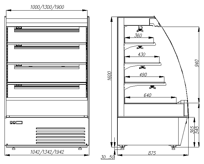 Тепловая витрина Carboma F 16-08 SH 1,3-2 (1600/875 BT-1,3) используется на предприятиях общественного питания и торговли для поддержания в горячем состоянии, кратковременного хранения, демонстрации и продажи выпечки, различных закусок и готовых блюд. Модель оснащена прозрачным стеклопакетом, 3-мя полками с кронштейнами c возможностью расположения под углом и изменения высоты, ночной шторкой и регулируемыми ножками высотой от 30 до 50 мм. Задняя стенка, полки и верхняя обшивка выполнены из стали с полимерным покрытием, сменные декоративные панели - из нержавеющей стали.
