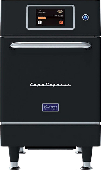 Высокоскоростная печь Pratica Copa Express 1 используется на предприятиях общественного питания, торговли и производствах для приготовления множества блюд. Сенсорная панель управления с интерфейсом на нескольких языках, для загрузки и выгрузки рецептов используется USB-порт, возможность сохранения до 1024 рецептов, разделенных на 16 групп, по 8 шагов приготовления в каждом. Материал корпуса - нержавеющая сталь AISI 430, материал внутренней камеры - нержавеющая сталь AISI 304. Печь возможно использовать с металлической посудой.