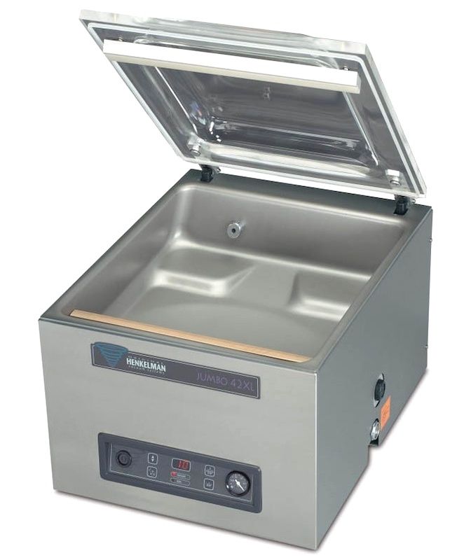 Настольный аппарат Henkelman Jumbo 42 XL позволяет создать вакуумную упаковку для различных типов продуктов, от мяса и рыбы до овощей и сыров, а также для фармацевтической, электронной и прочей непищевой продукции. Такой метод упаковки позволяет предотвратить попадание бактерий, тем самым увеличивая срок годности, сохранить необходимый уровень влаги и уберечь от заветривания.