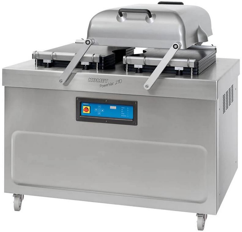 Вакуумный упаковщик KOMET POWERVAC 210 используется предназначается для вакуумной упаковки мяса, сухофруктов, хлебобулочных изделий, гранулированных, порошкообразных и жидких продуктов на предприятиях общественного питания, торговли и пищевых производствах. Управление при помощи сенсорной панели с 10 изменяемыми программами и функцией мягкого обжима для устранения воздушного удара на нежные продукты. Упаковщик оснащен легкозаменяемой беспроводной запаечной планкой и заполняющими пластинами, регулирующими высоту. Материал корпуса и камеры - нержавеющая сталь, материал крышки - оргстекло.
