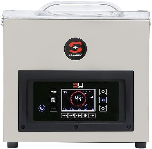 Вакуумный упаковщик Sammic SU-310G используется на предприятиях общественного питания, торговли и пищевых производствах для упаковки в вакуум продуктов питания и жидкостей для увеличения срока хранения, а также приготовления способом Sous Vide. Модель оснащена сенсорным управлением, ЖК-дисплеем, насосом Busch, подсветкой, заправочной плитой и прозрачной крышкой. Материал корпуса и внутренней камеры - высококачественная нержавеющая сталь, материал крышки - метакрилат.