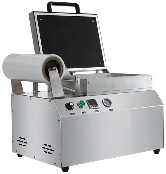 Скин-упаковочная машина Hualian HLV-240VST используется на предприятиях общественного питания, торговли и пищевых производствах для вакуумной упаковки в скин-пленку различных пищевых продуктов. Модель оснащена электромеханическим управлением, температурным контроллером, вакуумной камерой, держателем рулона с пленкой и откидной крышкой. Материал корпуса и камеры - высококачественная нержавеющая сталь.