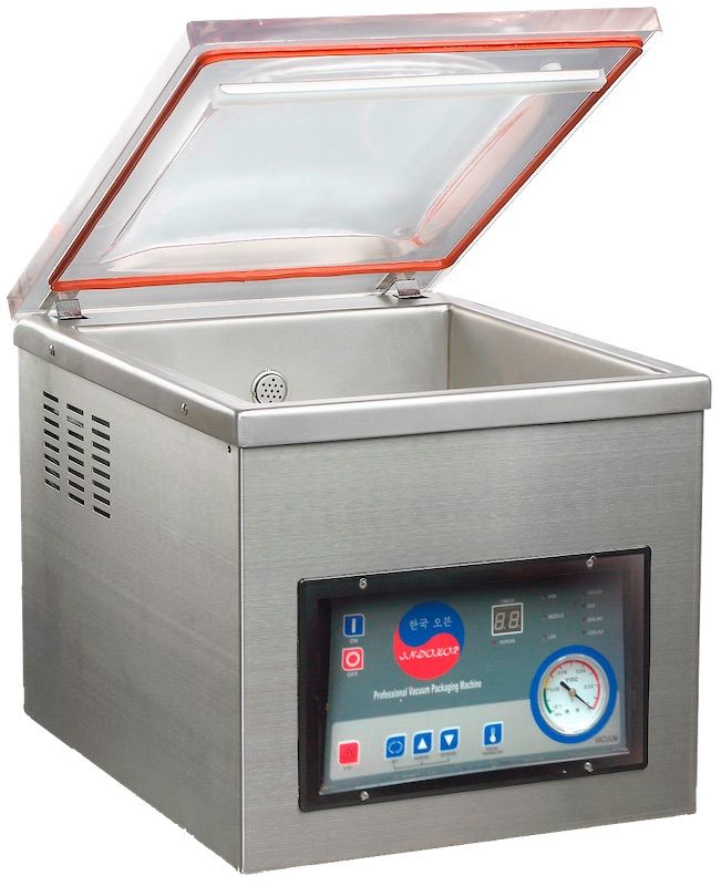Однокамерный вакуумный упаковщик INDOKOR IVP-300/PJ используется на предприятиях общественного питания и торговли для упаковки как пищевых, так и непищевых продуктов (электроники, полупроводников, фармацевтической продукции, текстиля и других товаров) в вакуумные пакеты. На шве можно пропечатывать дату, номер партии и другие символы с помощью специальной силиконовой вставки-клише. Модель оснащена модулем газонаполнения и панелью управления с таймером, вакуумметром и индикаторами рабочего процесса. Корпус и камера выполнены из нержавеющей стали, прозрачная крышка - из специального стекла.