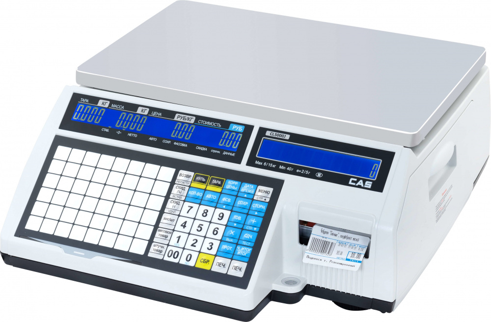 Торговые весы CAS CL5000J-6IB TCP-IP используются на предприятиях общественного питания и торговли. Модель оснащена цифровым и алфавитно-числовым жидкокристаллическими дисплеями на корпусе.